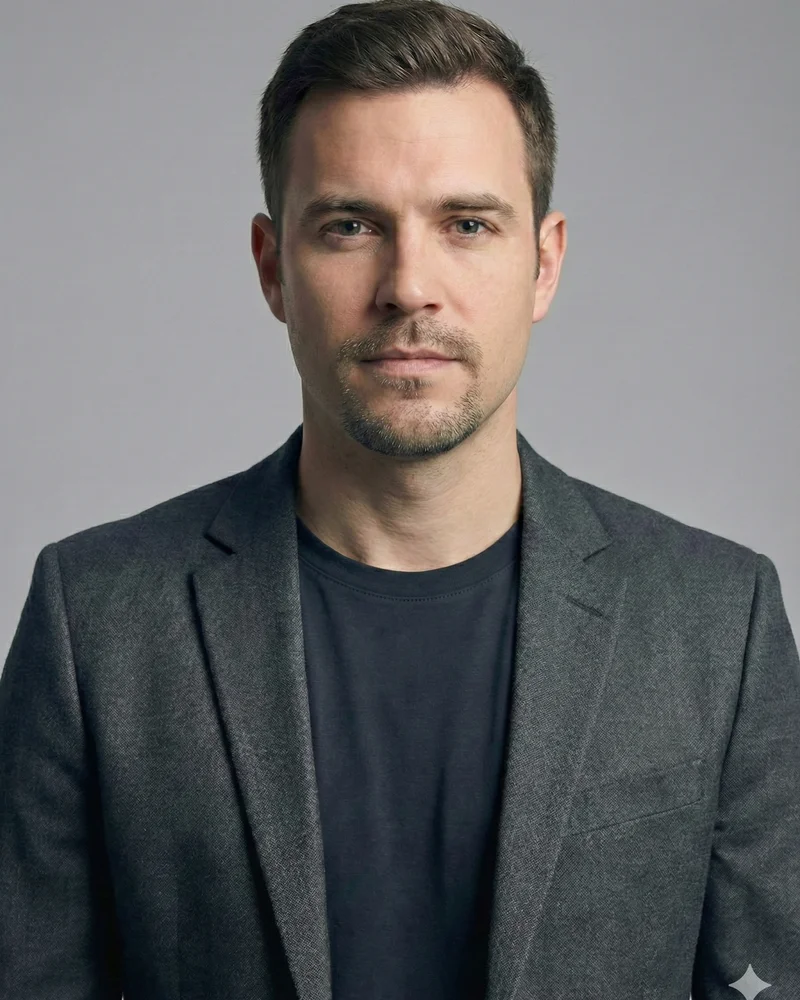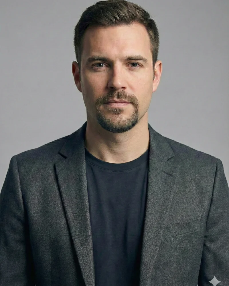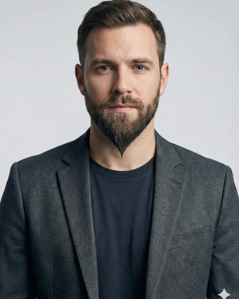 A goatee maintained at stubble length with intentional light growth on cheeks.