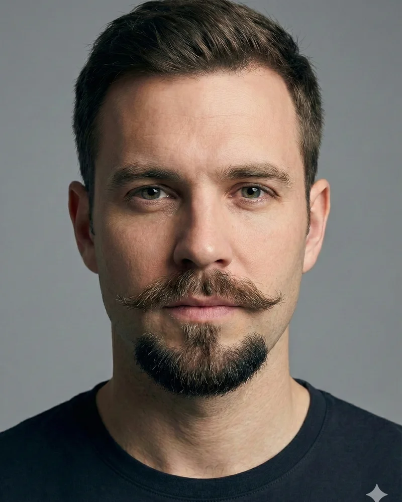 The Balbo features a separate mustache paired with an inverted T-shaped chin beard. Named after Italian aviator Italo Balbo, it's distinctive and fashion-forward.